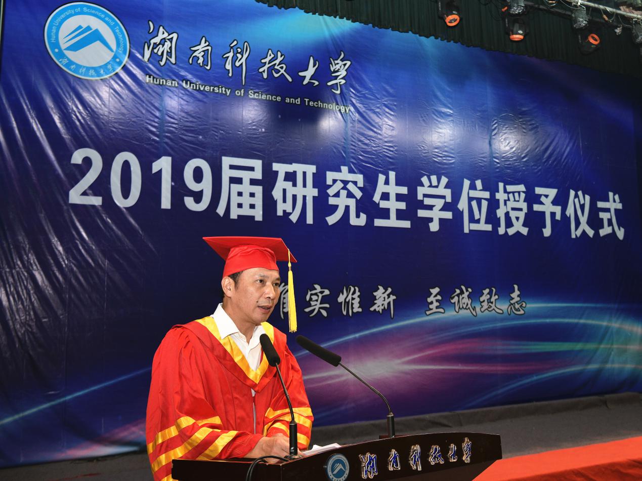 校长李伯超代表学校向圆满完成学业的全体研究生表示热烈的祝贺。他认为,科大学子应怀有一颗火热的赤子之心。人生的旅程漫长艰辛,任凭岁月变迁、人生起伏,我们要对祖国、对人民、对母校怀有赤子之心,深厚的赤子之心是人生最强大,最持久的力量源泉。我们要自觉将自己的命运与祖国的命运紧紧联系,始终与人民站在一起,以人民之忧为忧,以人民之乐为乐。希望科大学子在历经沧桑后,仍然怀有赤子之心,无论身在何方,飞得多高,走的多远,母校都是最坚强的后盾,最温暖的家园。