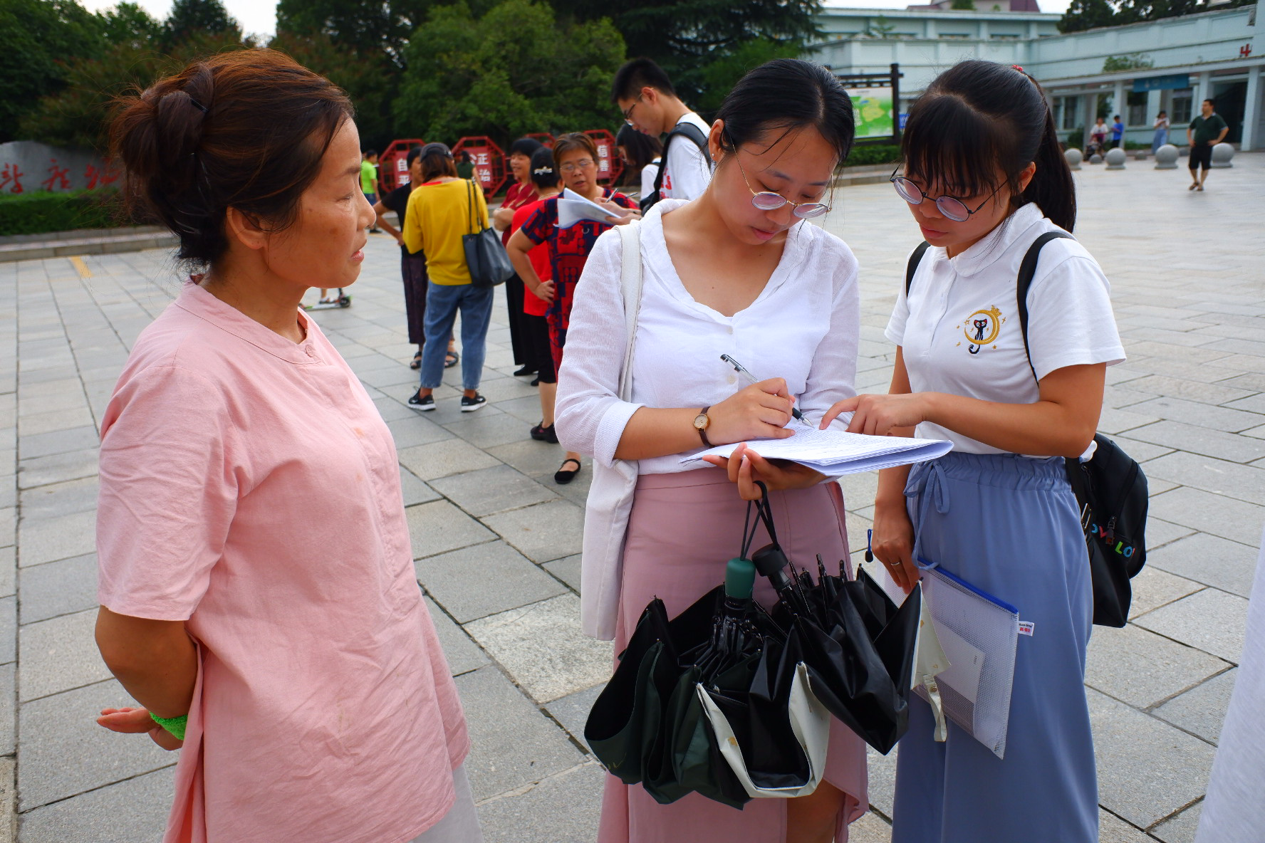 烈日当空,科技服务团的成员们吃过午饭后,稍作休整,先后走访了韶润村、韶山村、湘韶村三村村委会并开展了问卷调查。在调研过程中,成员们发现,韶润村与韶山村旅游业较为发达,带动全村经济发展,因此两村妇女的福利待遇也相对较好。尤其是韶润村,承接了“换乘中心”“润泽东方”“华润超市”等大型项目,村中妇女主要就近工作,方便兼顾家庭和工作。而湘韶村地理位置比较偏远,经济相对落后,外出务工的妇女更多,妇女待遇不及前两村。